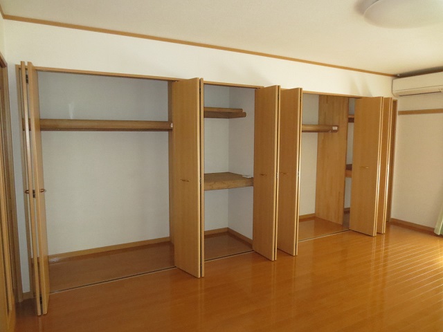 2階角部屋で隣のお部屋との壁一面が『クローゼット』なんです!(^^)!たくさん収納もでき、音も軽減出来て一石二鳥です。